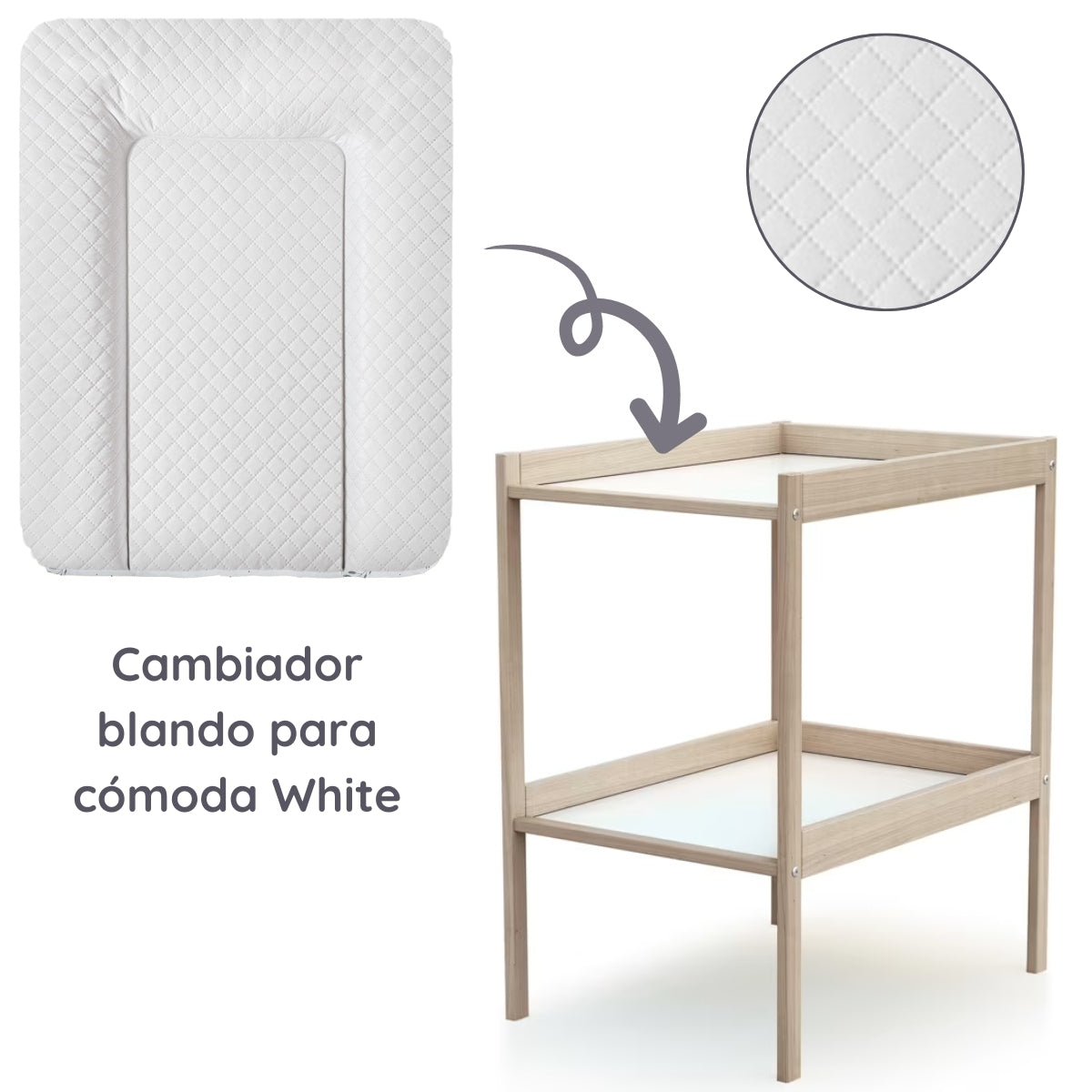 Cotton color cambiador base rígida 2 en 1 para cuna y cómoda