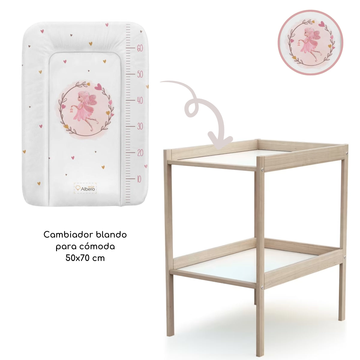Diseño Práctico: Con un tamaño de 70x50 cm (+/- 1 cm), se adapta perfectamente a cómodas y otros muebles de cambio.
