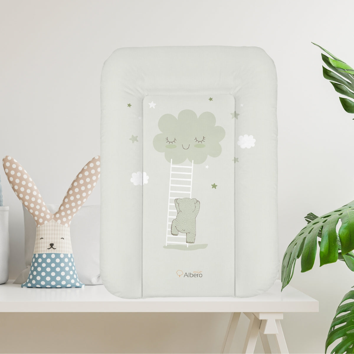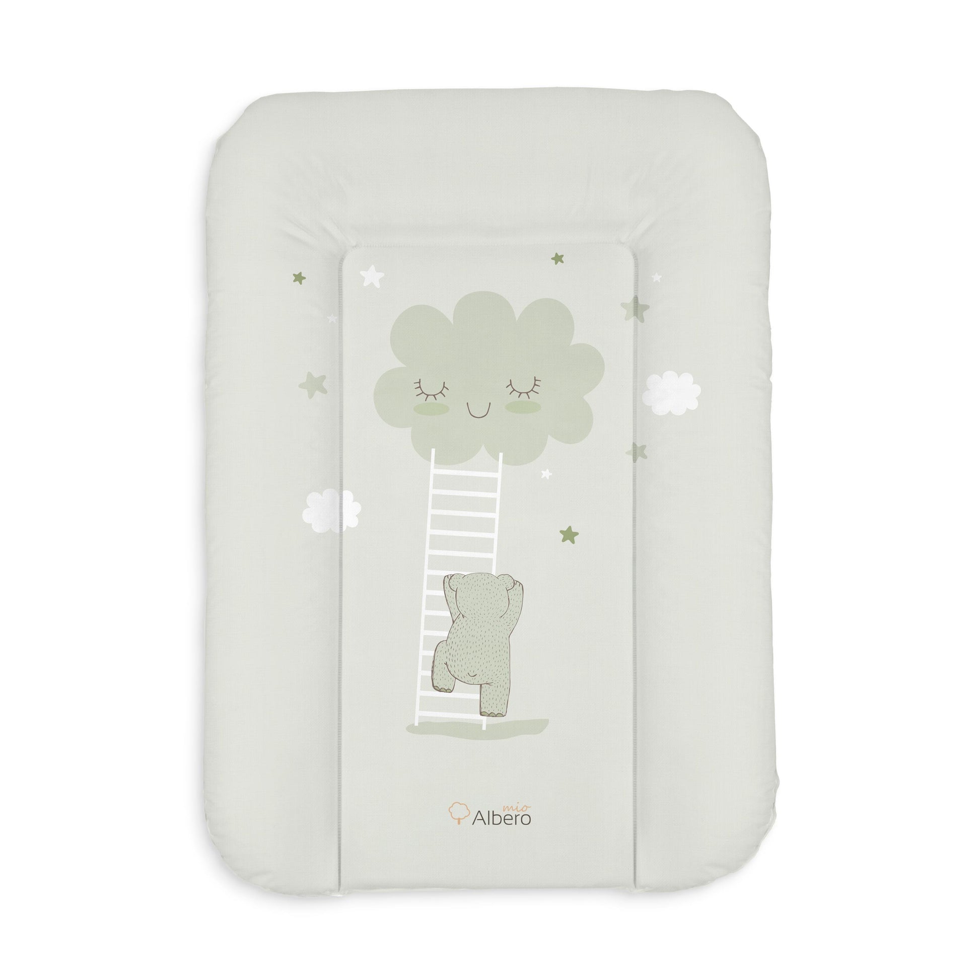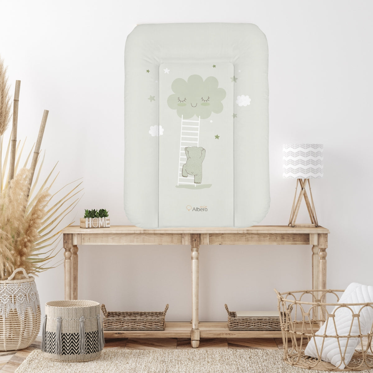 Coloca la el cambiador Basic sobre la cómoda, el mueble de cambio o cualquier superficie plana. Asegúrate de que esté estable antes de colocar al bebé. La lámina protectora cuidará la piel del bebé durante el cambio y el relleno suave le brindará comodidad. Recuerda usarla bajo la supervisión de un adulto.