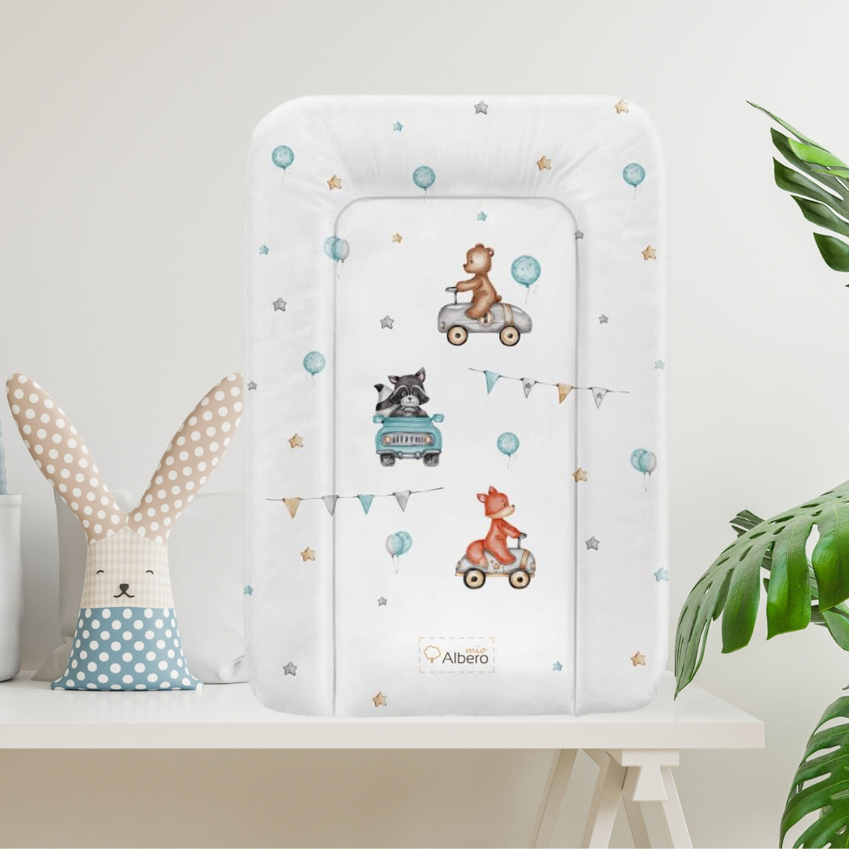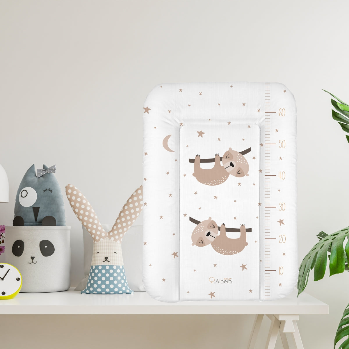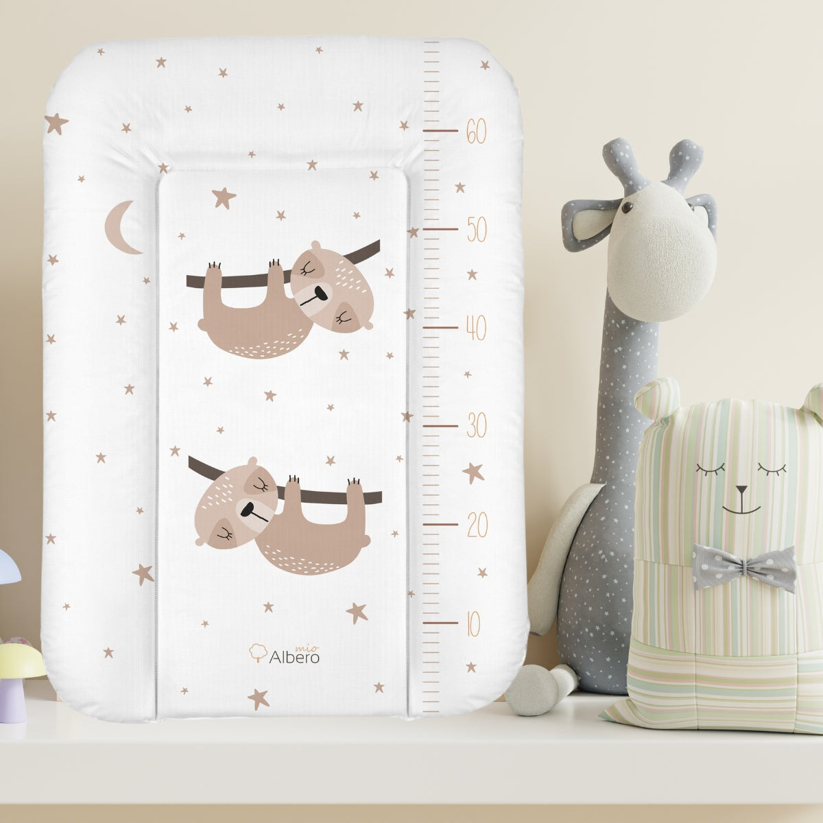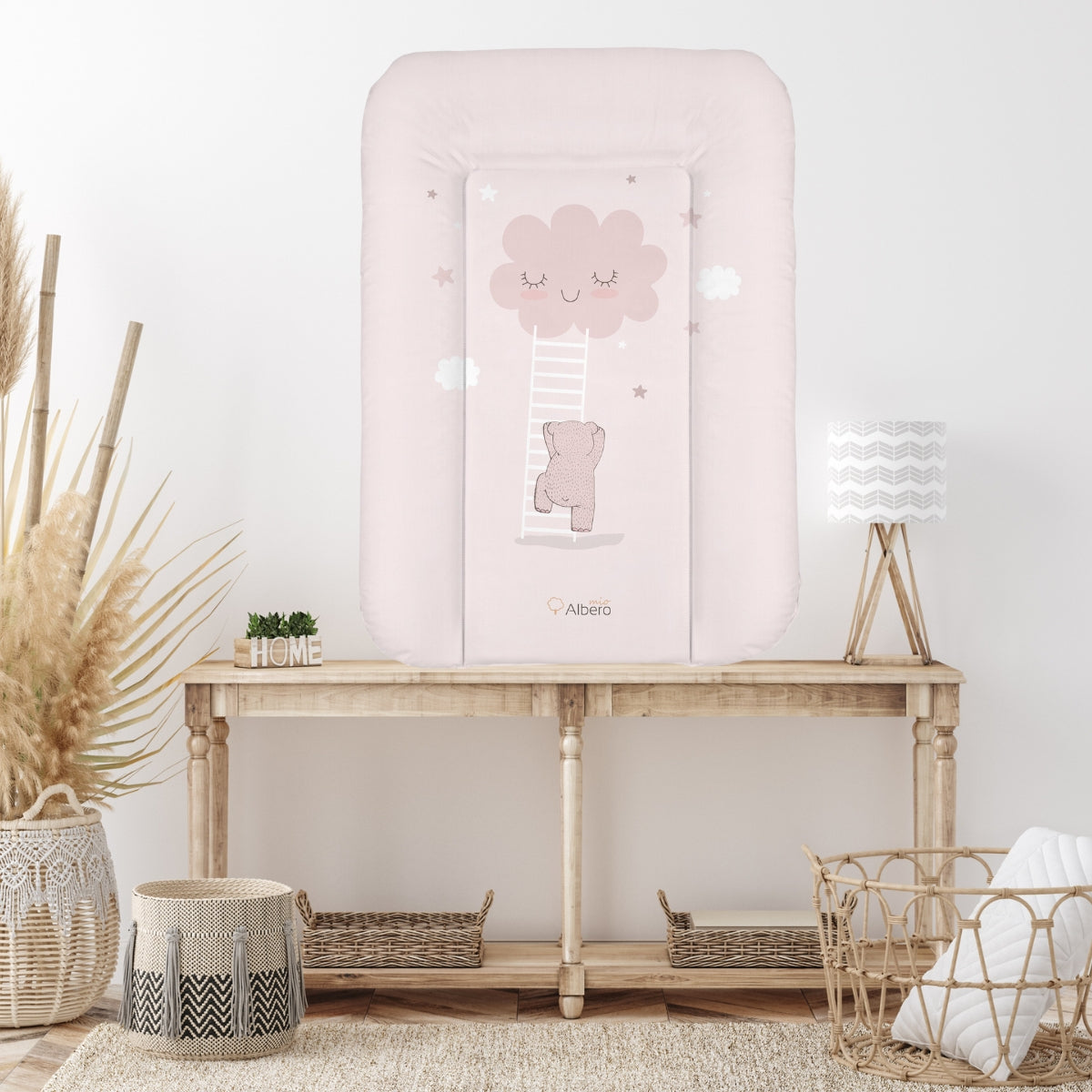 Coloca la el cambiador Basic sobre la cómoda, el mueble de cambio o cualquier superficie plana. Asegúrate de que esté estable antes de colocar al bebé. La lámina protectora cuidará la piel del bebé durante el cambio y el relleno suave le brindará comodidad. Recuerda usarla bajo la supervisión de un adulto.