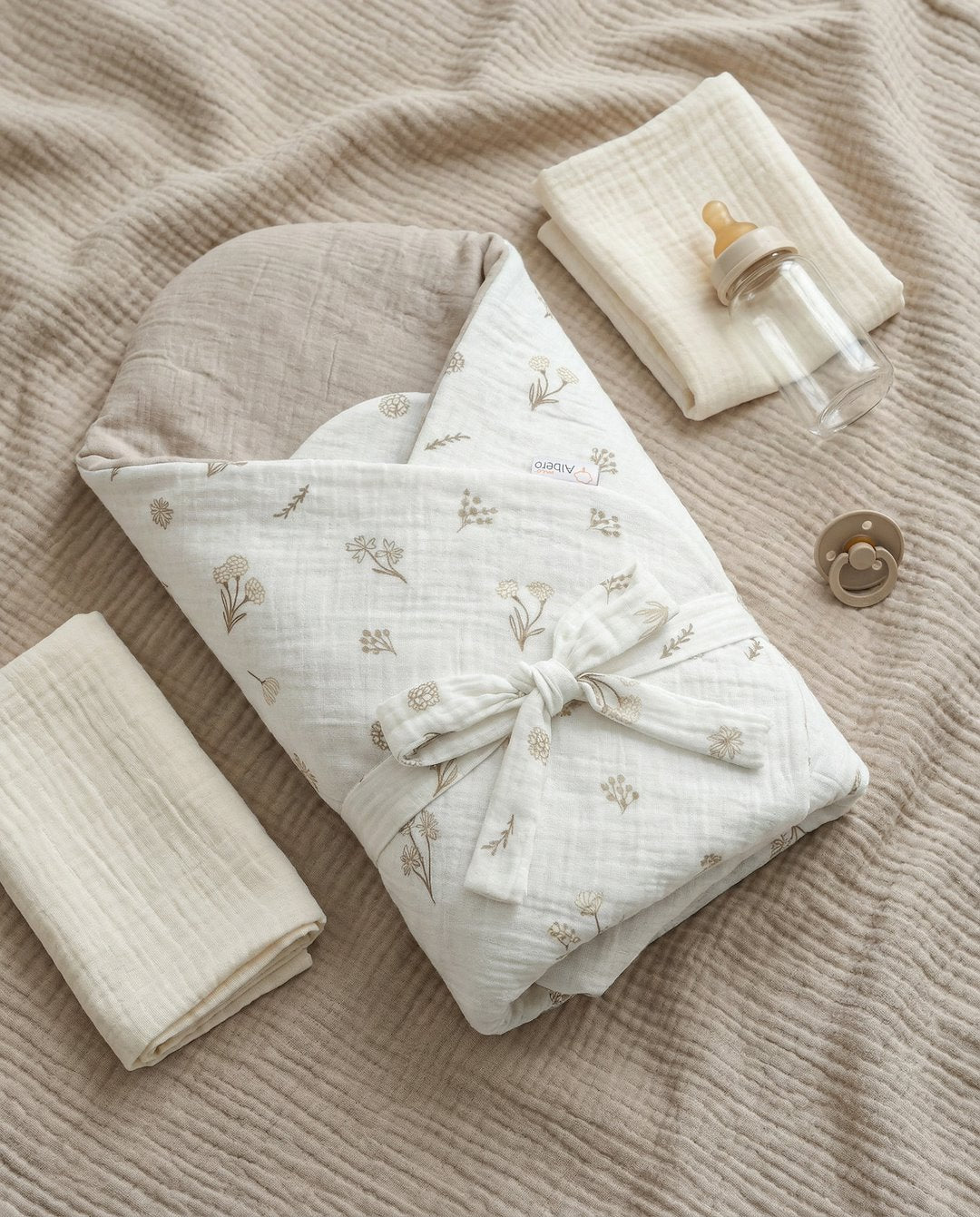 • Muselina 100% algodón double gauze suave, transpirable y delicada con la piel.